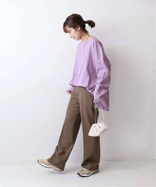広めに開いたネックラインが、女性らしさをプラスしてくれます。透明感を引き立ててくれるパープルカラーが新鮮な印象。