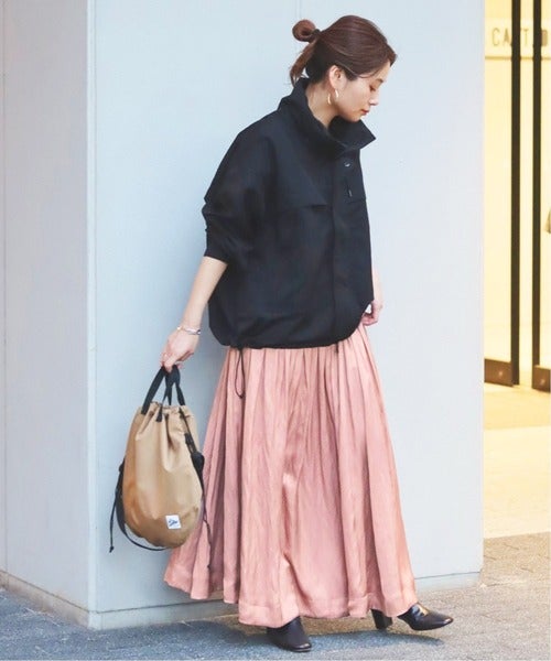たっぷりと生地を使ったボリューム感が魅力のギャザースカート。上品な光沢感のある素材使いが、華やかさのある着こなしを作ってくれます。