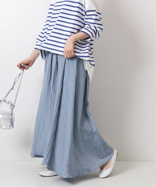 落ち感のある素材使いがポイントのギャザーロングスカート。