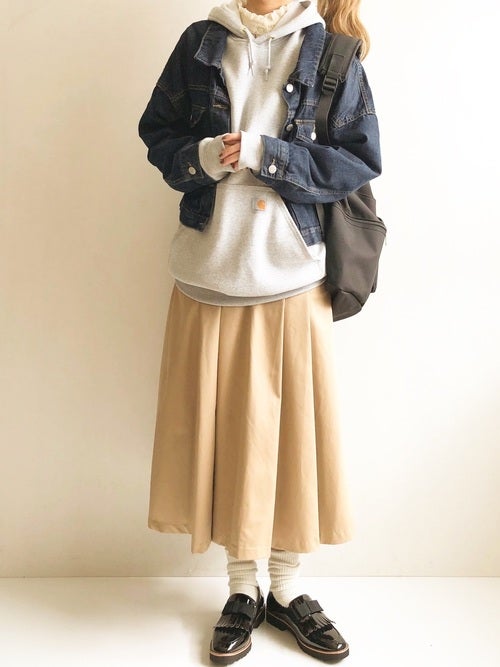 オーバーサイズパーカー×スカートの春コーデ