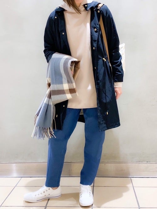 オーバーサイズパーカー×紺アウターの春コーデ
