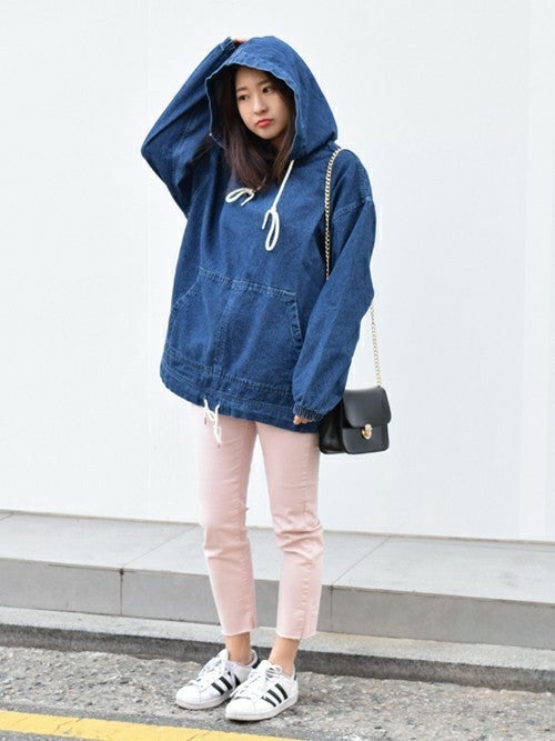 デニムオーバーサイズパーカーの春コーデ
