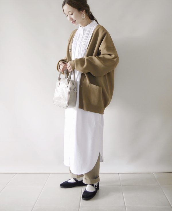 《シャツ/UNIQLO U カーディガン/maiko×INTER FACTORY》