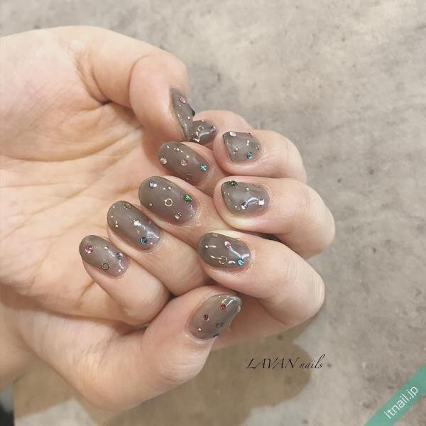 例えば、シースルーブラックでカラーリングしたシンプルネイルに、カラフルなストーンを使ってドットアートを施すデザインはいかがでしょうか。ストーンを使ったアートならば、キレイな円形を描くのが苦手なセルフネイラーさんでもチャレンジしやすいですよね。