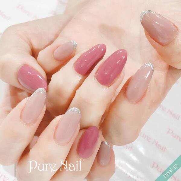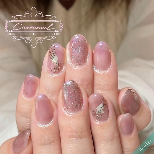 青みピンクは透け感たっぷりにまとうのがかわいい。艶が引き立つのはもちろん、今っぽさも漂わせることができますよ。グリッターなどきらめきアイテムでデコレーションしてオシャレを楽しみましょう。