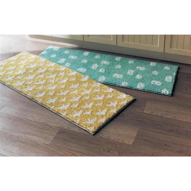 キッチンに立つ時間が楽しくなりそうな、北欧柄のキッチンマット。他のインテリアにも馴染む、優しいカラーも魅力です。