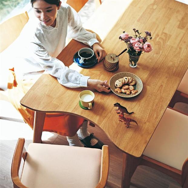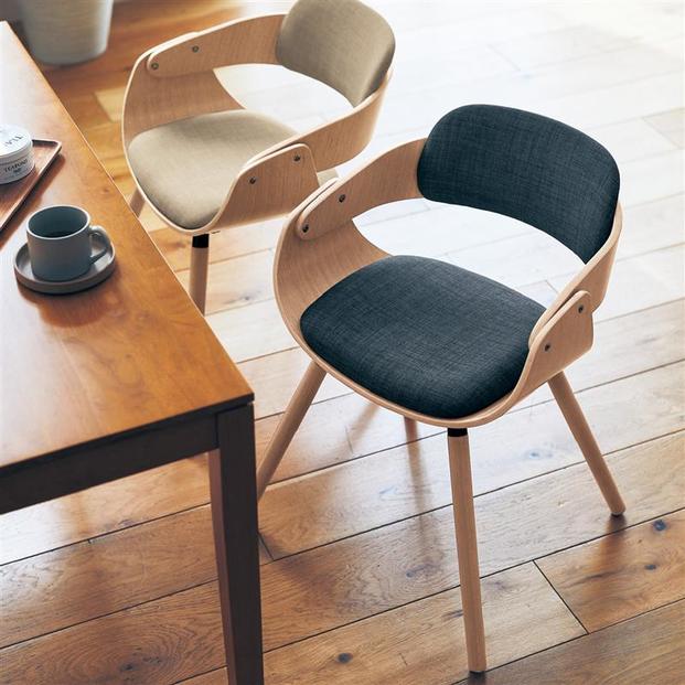 素材使いがおしゃれなダイニングチェア。腰を包み込むようなデザインで座り心地が良く、さらにクッションは3段階の高さ調整が可能!