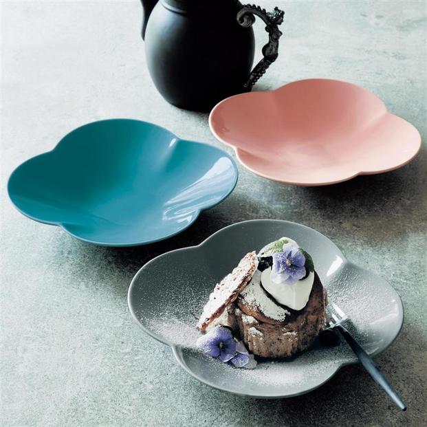 ふんわりとした花型が愛らしいプレート。淡いパステルカラー2種と、使いやすいライトグレーの3色展開です。