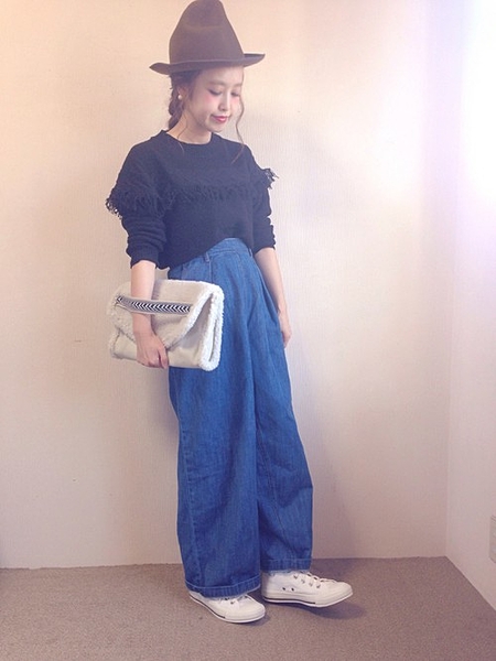 2♡ミニ丈ニットにはバギーでトレンド感