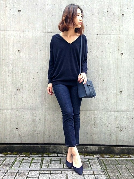 5♡濃色デニムにはネイビーを
