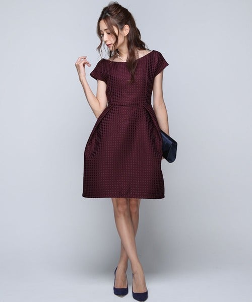 ハリ感が人気のワッフルジャガー素地で作られたワンピースは、春のオケージョンコーデにおすすめの1枚です。