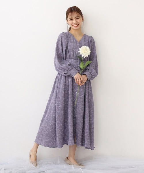 最後は、春気分が高まるパープルベースの人気ドットワンピースを見ていきましょう。
