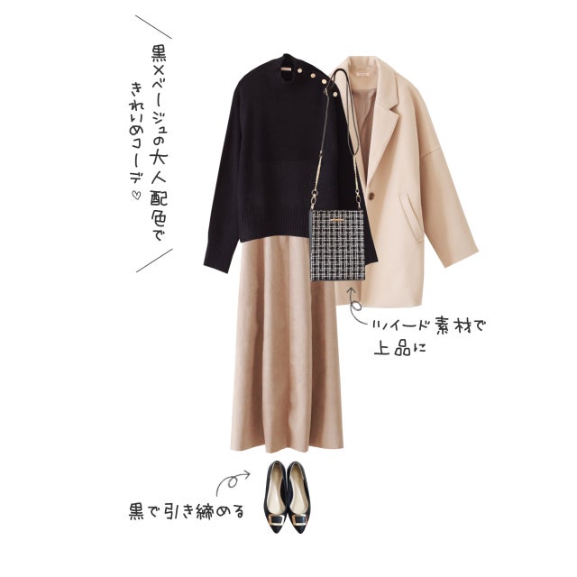 黒×ベージュの大人配色でキレイめコーデ