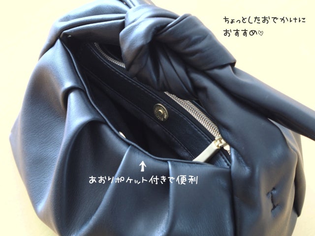 ころんとした形が可愛いミニサイズのバッグ。結んである持ち手が、女性らしくオシャレなポイント。