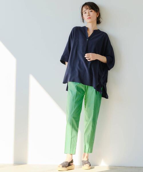 春コーデに取り入れたいカラーパンツと合わせた時も、スキッパーブラウスに引き締め感があるので大人の骨格ストレートさんに似合う着こなしに仕上がっていますよね。