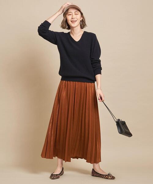 カジュアルなニットトップスでもVネックだと大人っぽい印象なので、きれいめなスカートとも合わせやすいですね。