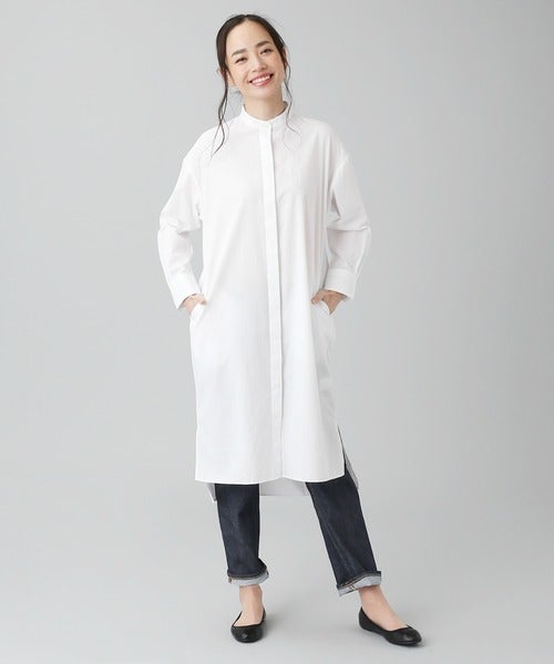 40代女性におすすめの服装「白シャツワンピ×デニム」