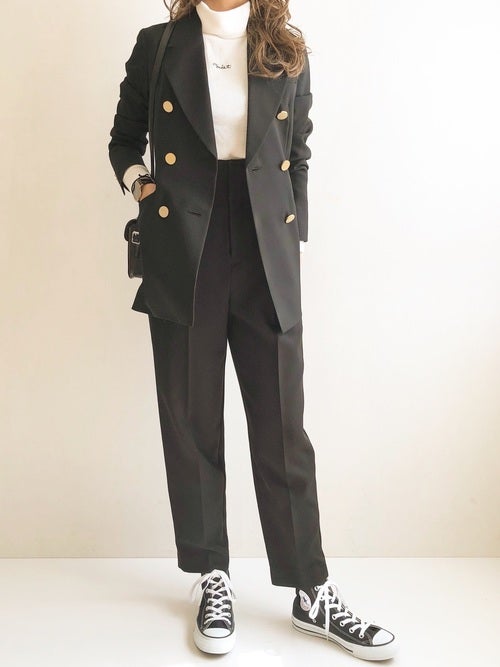 40代女性におすすめの服装「黒ジャケット×黒パンツ」