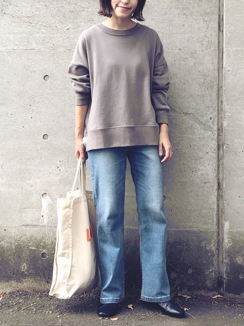 40代女性向けの服装「グレースウェット×デニム」