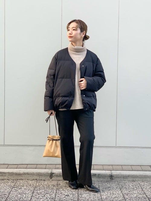 たくさんの冬用アウターを手放した40代女性ミニマリストさんが持っておくべきなのは、ボトムスを選ばす着回ししやすいショート丈のダウンコートです。ポイントは、すっきりとした顔周りを演出するVネックデザイン。ダウンジャケットにありがちなスポーティーさを上手に和らげてくれるので、ミニマリストさんならではの黒パンツ&ショートブーツのファッションもよりスタイリッシュに演出してくれますよ。