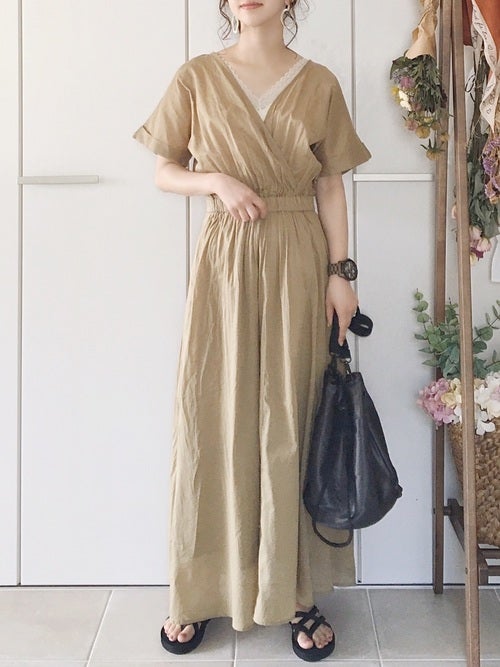 暑い夏は、おしゃれをしようとあれこれコーディネートを考えるのもおっくうになりがちですよね。それなら、さらっと一枚でファッションが完成する、ベージュの半袖カシュクールワンピースを購入するのも手。インナーのアイテムを変えたりカーディガンなど羽織りをプラスすれば違ったイメージの服装にもアレンジできるので、40代のミニマリストさんにうってつけなアイテムですよ。