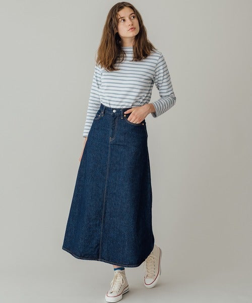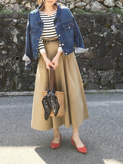 フレンチカジュアル定番のデニム×ボーダー柄ですが、スカートスタイルでレディースライクにシフトチェンジ。