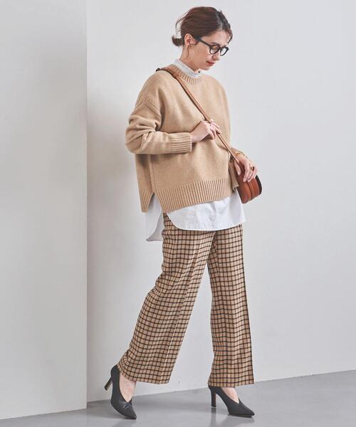 組み合わせるパンツは、ベージュカラーで立体感のあるきれいめなデザインをチョイス。