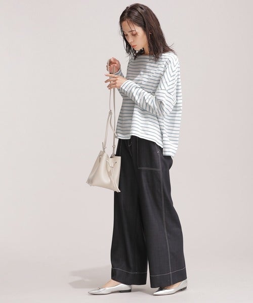 シンプルなボーダートップスとワイドパンツをざっくりと着こなし、年齢問わず似合う春のレディースコーデに。ボーダー柄は細めのラインをチョイスすると、大人っぽくきれいめな雰囲気も叶えられます。