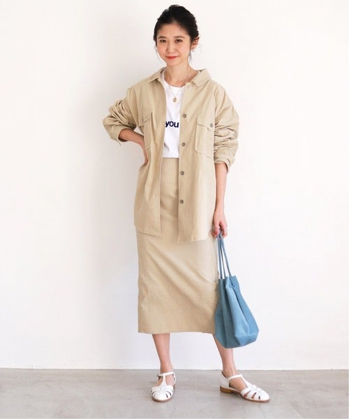 広がりすぎないスカートスタイルなので、普段パンツが多い方にもおすすめしたい春コーデです。