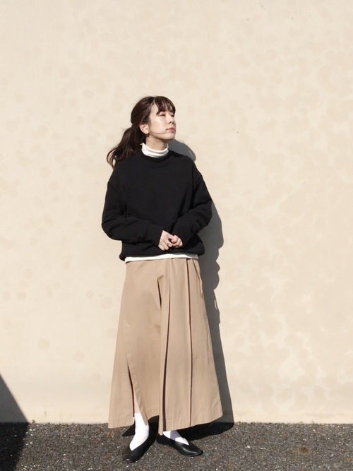 スカート以外をモノトーンでシックに仕上げ、落ち着いた雰囲気を引き出すのもポイントですよ。