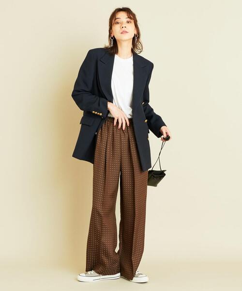 ブラウンパンツとのスタイリングでレトロな雰囲気が今っぽいレディーススタイルに仕上がっています。