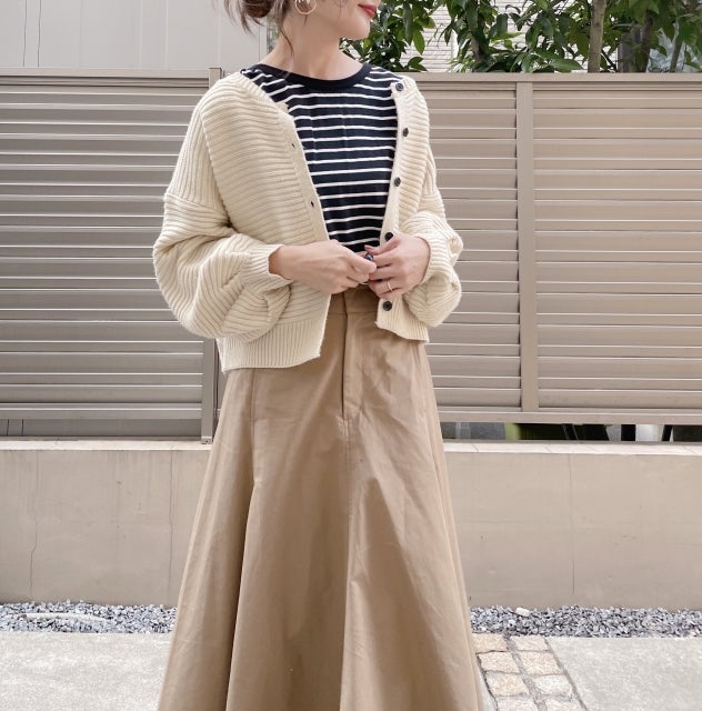 裾にかけて広がるAラインがエレガントな雰囲気ですが、素材がカジュアルなので色んなコーデに合いそう!と購入。
