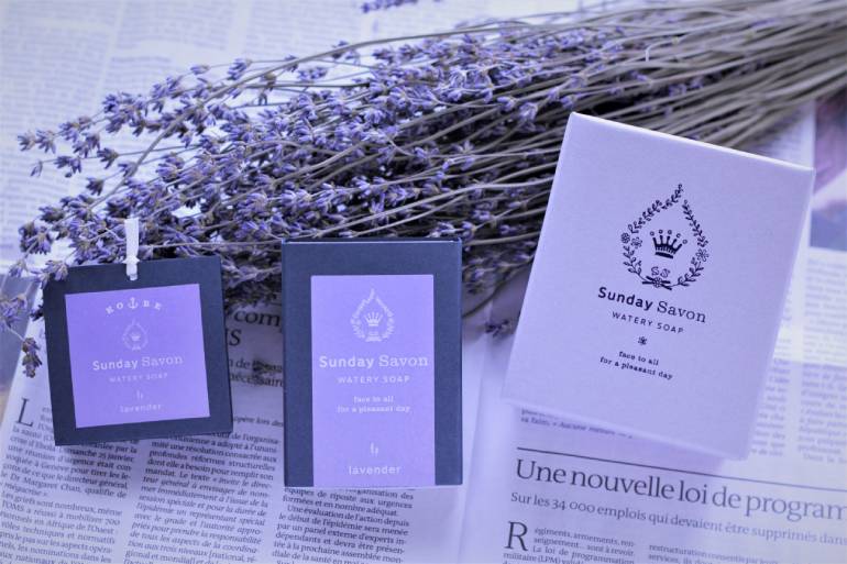 Sunday Savonの「水入りせっけん」は、伝統的なコールド製法に加え、乾燥過程を含まないという新しい技術で作られている。水をたっぷり含んだせっけんのなかには、天然の保湿成分と自然の植物をベースにした香りが贅沢にぎゅっとつまり、包みを開けた瞬間からもぎたての果実を思わせる香りに包まれる。防腐剤、保存料を使用せず、薬事法の許可もとっている職人こだわりの逸品だ。