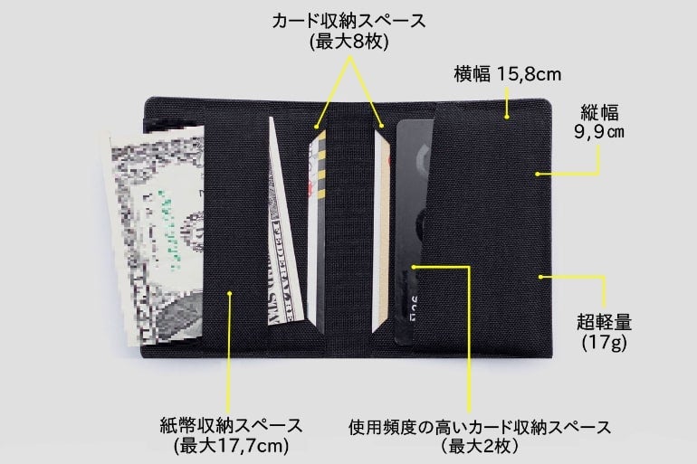 クレジットカードや電子マネーを主に使う人、旅先で身軽に動き回りたい人にはもちろん、コンパクトで機能的なセカンド財布を探している人も納得の内容だ。
