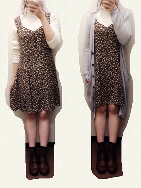 膝上ワンピとロングカーデで