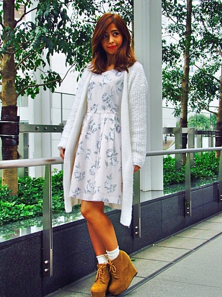 やっぱり可愛いのは王道!花柄ワンピ×シンプルニット、鉄板だけど絶対キマリます。