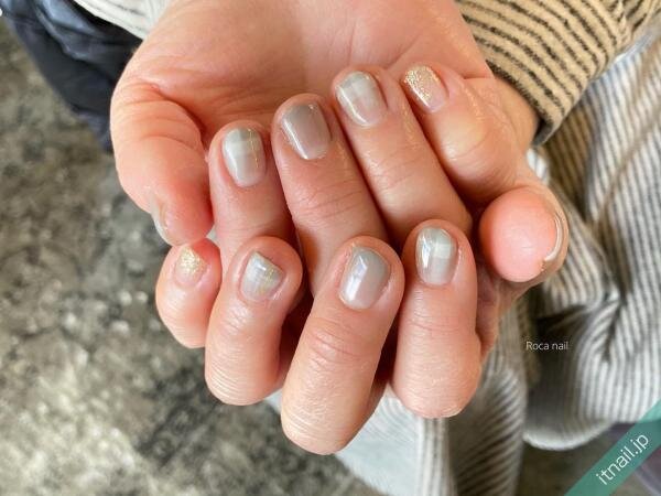 ブランケットを連想させるチェックネイルも冬らしいデザインですよね。こちらは柔らかいグレーでまとめられたナチュラルな発色のチェックネイル。冬の落ち着いた雰囲気を漂わせつつ、淡い透け感が軽やかなイメージを作り出してくれます。