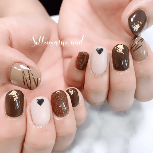 まずご紹介する短い爪におすすめのバレンタイン風ネイルデザインは、さらりと優しいカラーが特徴です。