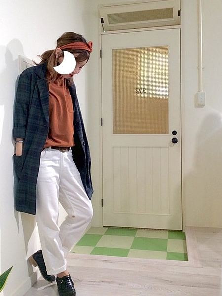 配色、着丈ともにベーシックなのでボトムスを