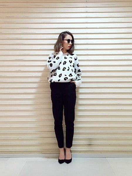 モノトーンのレオパード柄で派手すぎず、