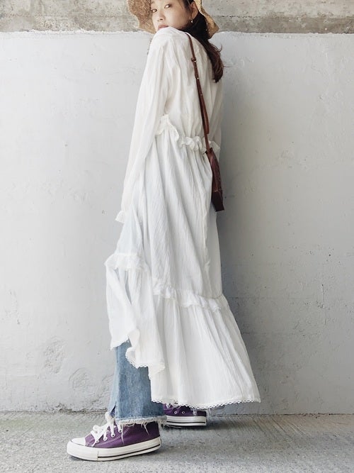 さらっと肌触りのいい白のロングワンピースをきれいめカジュアルファッションに取り入れて、温度管理が難しいシーズンも30代らしくスタイリッシュに乗り切りましょう。