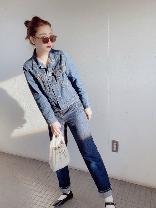 GUのデニムパンツでデニム×デニムコーデを。