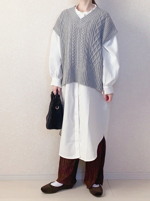 いつものコーデにレイヤードしてトレンド感を出したいニットベスト。