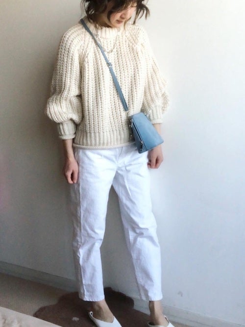 白系のワントーンコーデは見た目が軽やかで春に合う着こなしになるので、これからの時期おすすめです。