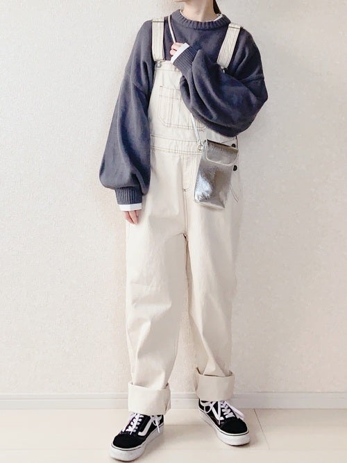 白系のサロペットだと、見た目がさっぱりしているので春を意識した着こなしが楽しめますよ。
