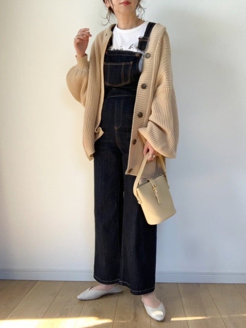 ダークな色味のデニムサロペットなら子供っぽさを感じさせないので、大人女性が着こなしやすいんです。