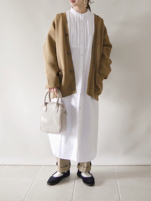 春らしくさっぱりとした着こなしを作るなら、白シャツワンピースも欠かせません。