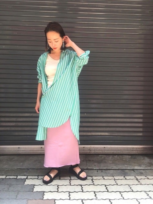 セットアップ風に着ることでワンピースのような雰囲気になってよりスタイリッシュなイメージになりますね。