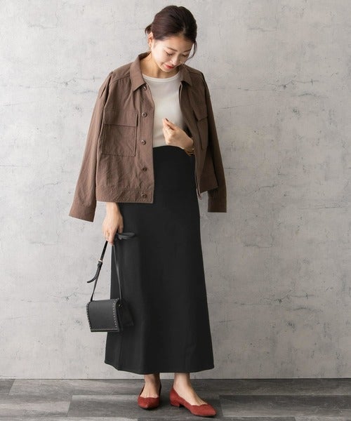 きれい見えする素材を使ったスウェットロングスカートはいつものコーデをアップデートしてくれます。
