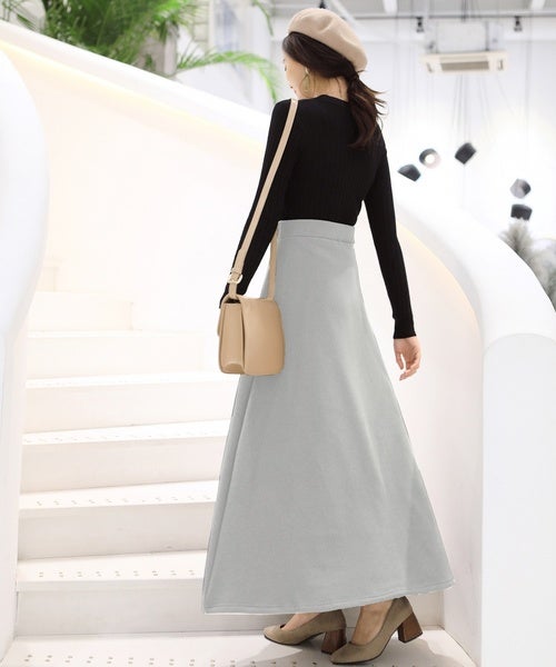 コクーンシルエットのグレースウェットスカート。ストンとしたIラインを作ることができるおすすめアイテムです。